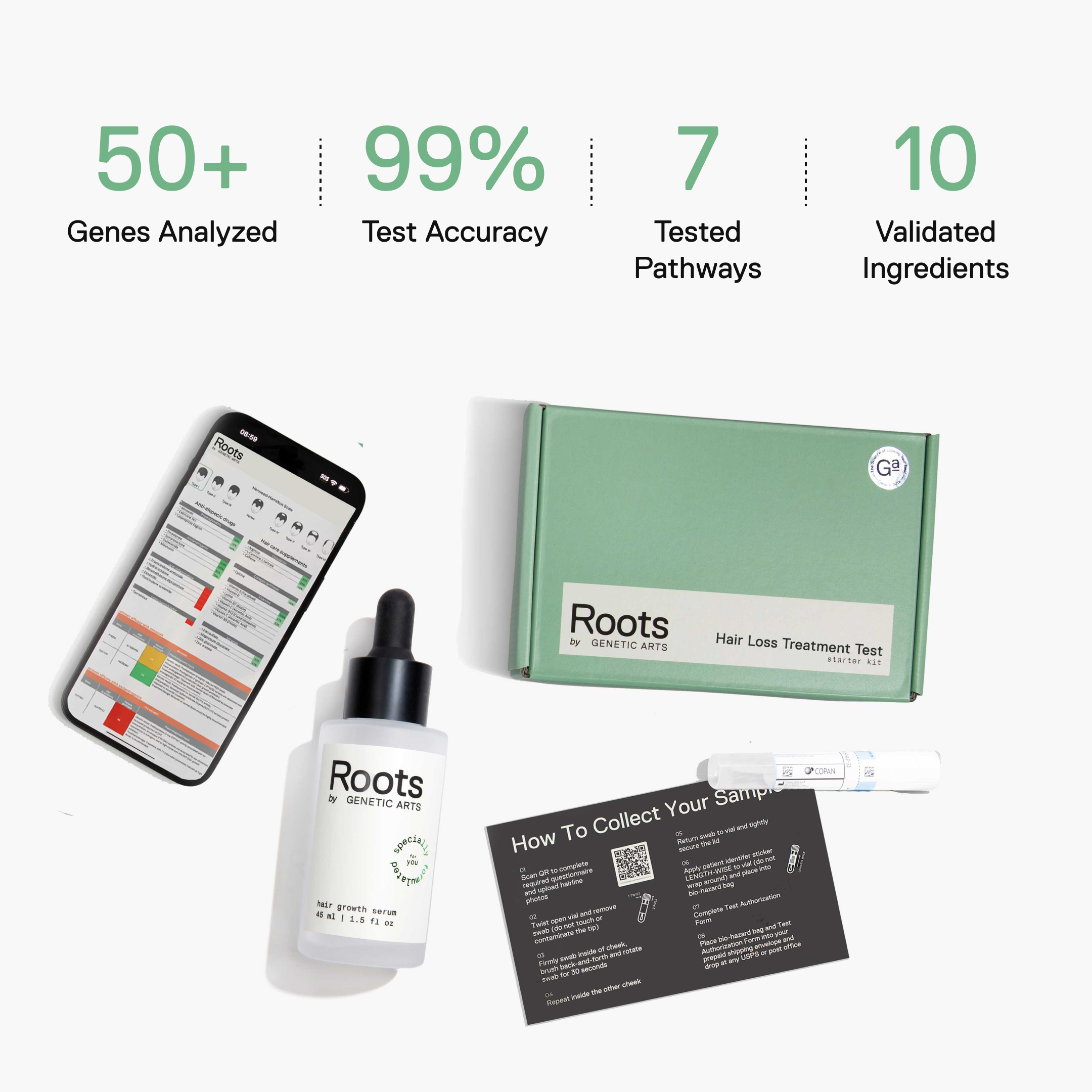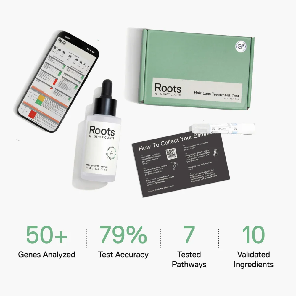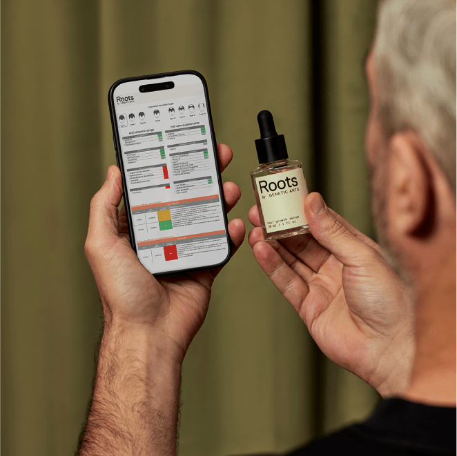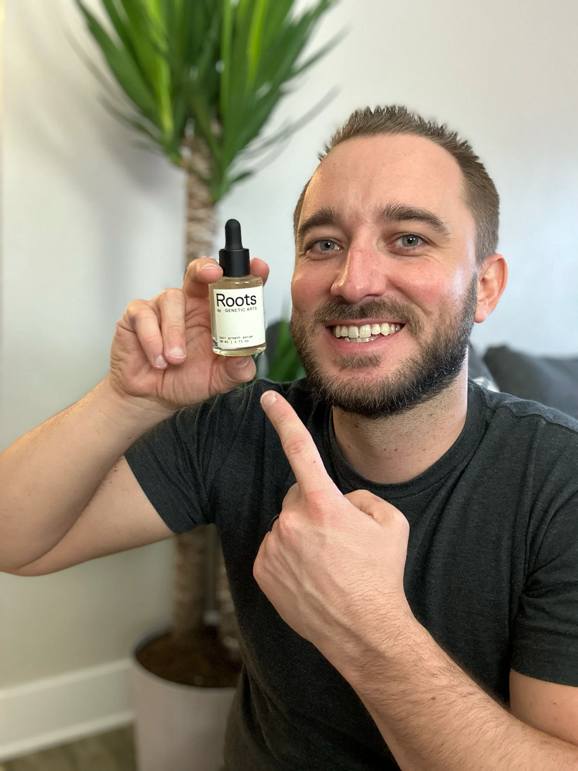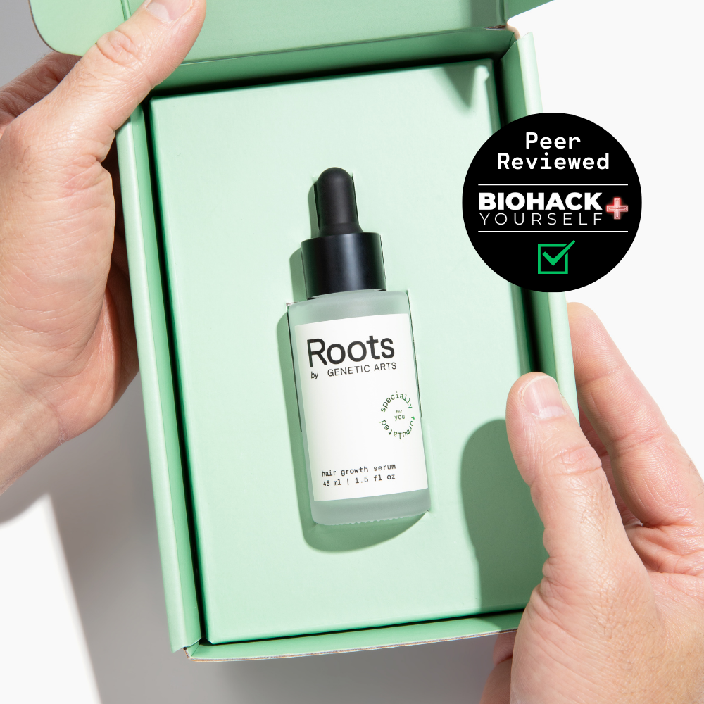 That’s how he discovered Roots by Genetic Arts—the only hair growth solution that begins with your DNA and builds a formula around your exact biology.