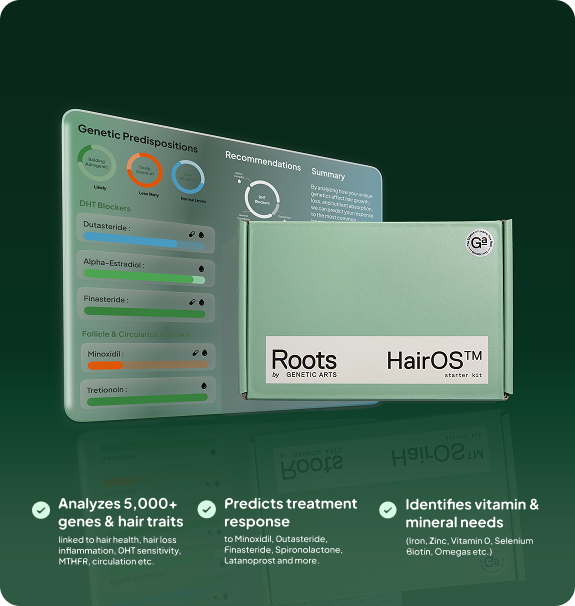 It also evaluates 11 nutrient and scalp-health traits and 5 key hair-biology markers including androgenetic alopecia risk, alopecia areata, dandruff, thickness, and graying.